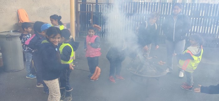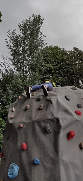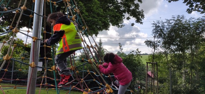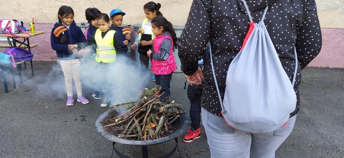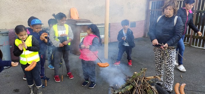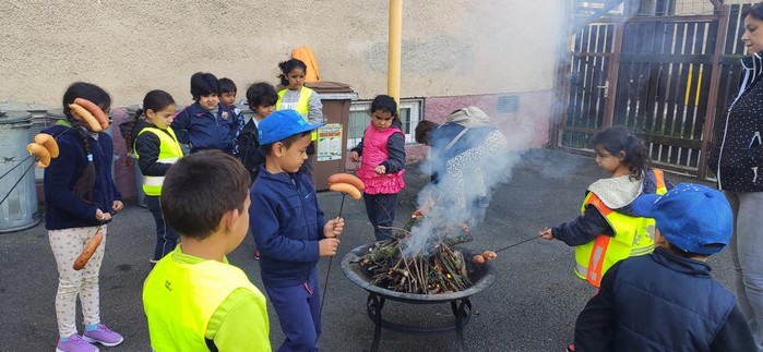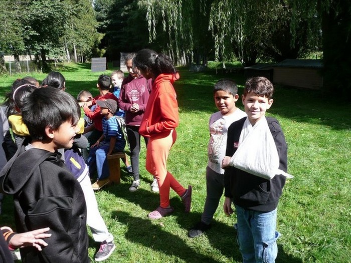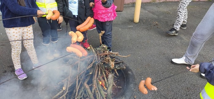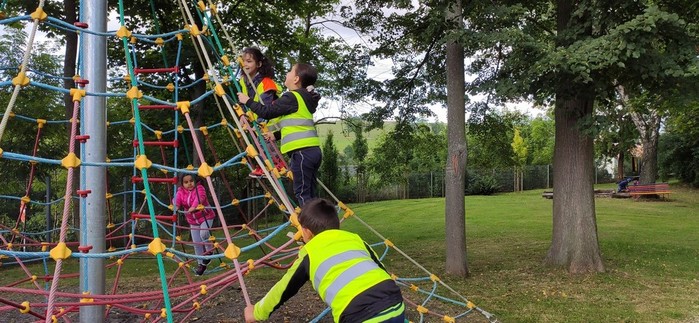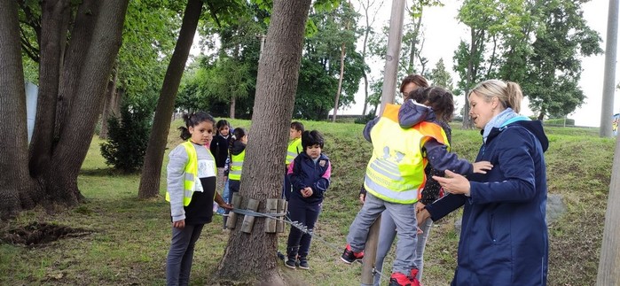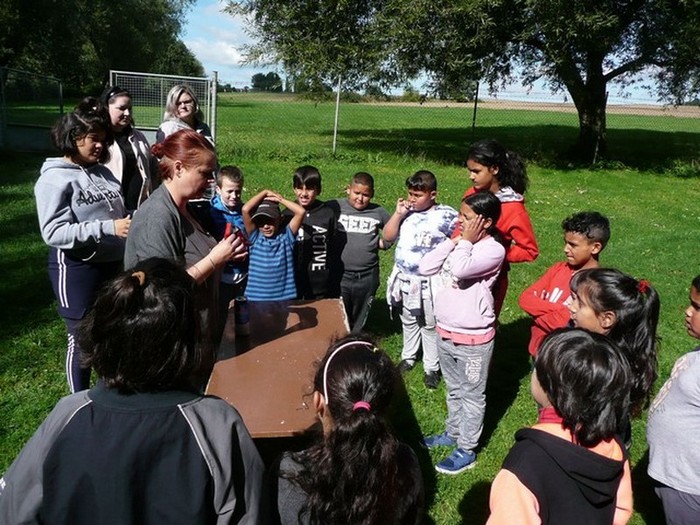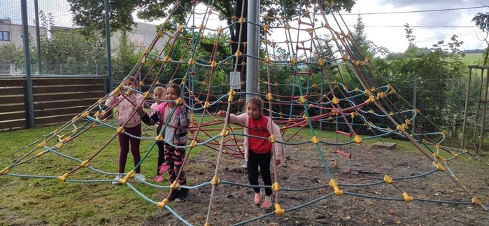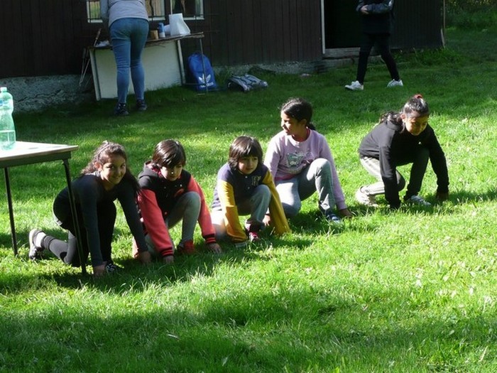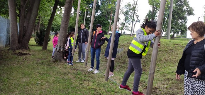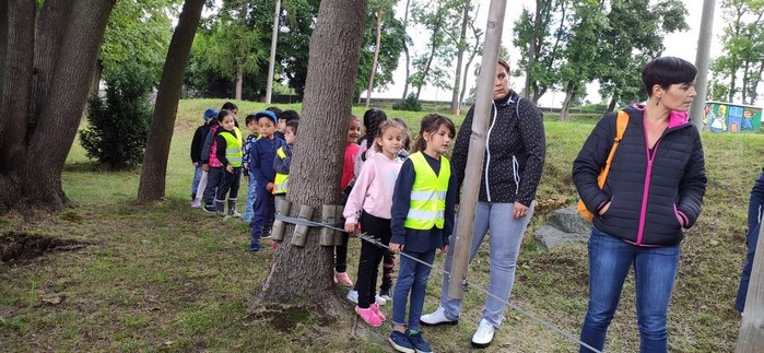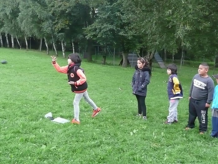Druhý den školy byl věnován aktivitám v přírodě. Děti plnily nejrůznější úkoly – skládaly puzzle známých vítkovských zákoutí, nebo obrázky lesních zvířat, luštily rébusy, házely granátem na cíl, nebo absolvovaly běh s hromadným startem. Při lekci zdravovědy ošetřovaly „zraněné“ spolužáky a naučily se postavit z vlastních rukou sedačku pro přenesení zraněného. Odměnou jim bylo opékání párků s posezením u ohníčku. Akční dopoledne se jim moc líbilo a my jsme jim slíbili, že určitě nebude poslední.