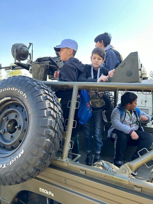 Dne 4. května 2023 jsme navštívili akci, kterou pro děti připravili vojáci v kasárnách v Lipníku n. Bečvou. Celý areál kasáren byl ten den zastavěn technikou, volně dostupnou dětem, vojáci i vojačky vítali děti s úsměvem, všechno vysvětlili, předvedli, popovídali si s nimi, odpovídali na otázky, nabídli ochutnávku vojenské stravy. Krom toho připravili mnoho aktivit, na nichž si děti mohly procvičit hlavu i tělo – lanové dráhy, kvízy o rostlinách, střelba z vojenských zbraní, vysílačky, nebo nákladní vozy, jimiž malé zvědavce vozili po areálu. Čas od času nám nad hlavami s burácením přelétaly vrtulníky. Když jsme pak ty nejmladší pustili do skákacího hradu, bylo jejich štěstí dokonalé. Většina z nich pak zpáteční cestu autobusem spokojeně prospala.