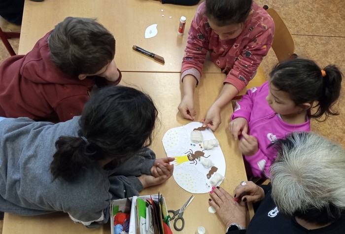 Nižší stupeň se vydal po naučné stezce na exkurzi do mraveniště. Žáci získali spoustu informací o tom, jak to v mraveništi chodí, kolika let se mravenci dožívají, jací jsou to siláci, čím se živí a co všechno dovedou, jak jsou v mraveništi rozděleny úkoly – co dělají chůvičky, dělnice, strážkyně a jakou důležitou roli má královna. Jejich úkolem pak bylo výtvarně zpracovat jednu část mravenčího života. Ti nejmladší, motivováni pohádkou „Mravenčí polepšovna“ se pustili do práce na výrobě komnaty pro královnu. Další tvořili odchovny pro larvičky, zásobárny, komůrky pro pěstování hub, nebo pro chov mšic, které mravenci využívají pro produkci medového nektaru. Společně vytvořili jedno celé a docela povedené mraveniště a ještě se mnoho přiučili. Po cestě si tvořili obrázky ze suchých trav, šišek, opuštěných šnečích ulitek a dalšího volně dostupného přírodního materiálu a moc se jim povedly.