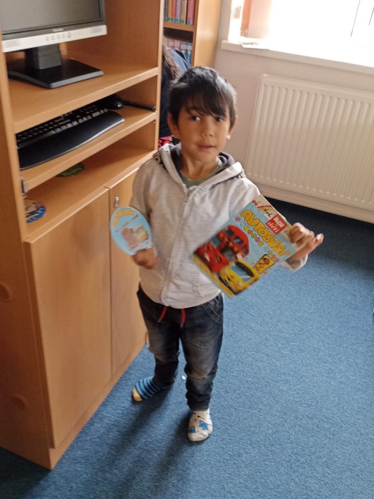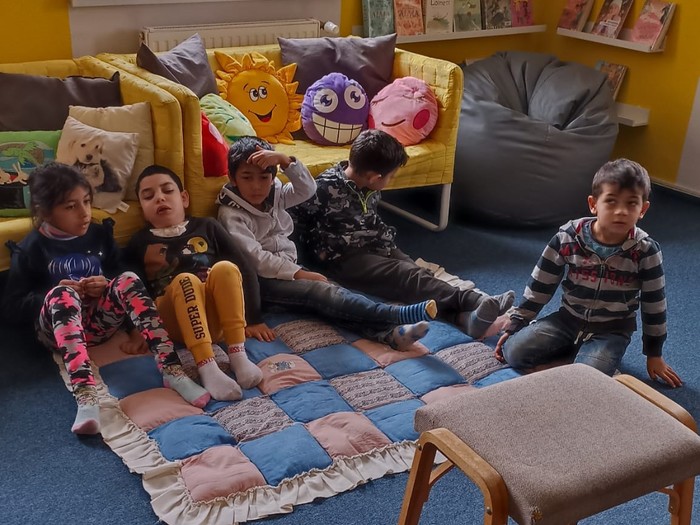 Příběh O neuklízených hračkách nám pomohl vyřešit dinosaurus se žlutou mašlí a děti prokázaly, že umí uklidit hračky, knihy, cédéčka i polštářky - a knihovna byla hned jako malovaná.