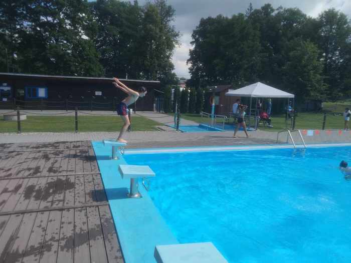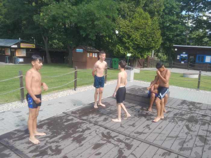 Zde bylo smíchu a křiku trochu více. Žáci se vyřádili ve vodě - všichni plavali, skákali, potápěli se, stříkali kolem sebe. Sluníčko krásně svítilo, počasí vyšlo tak akorát.