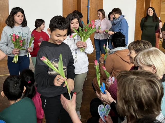 K oslavě Mezinárodního dne žen, dne 8. března, jsme pro naše paní učitelky nachystali drobné překvapení. Během velké přestávky v tělocvičně jsme pro ně připravili pásmo básniček a písniček.