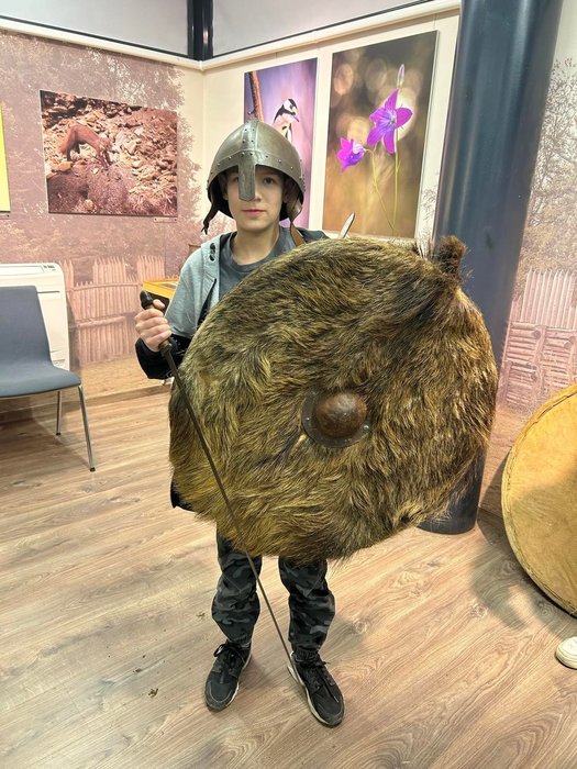Výukou dějin českých zemí v praxi bychom mohli nazvat návštěvu Archeoparku v Chotěbuzi Podoboře. Příjemný výklad s promítáním obrázků nastínil žákům život ve slovanském hradišti - jak a z jakých materiálů stavěli domy, jaké museli ovládat dovednosti, jaké nářadí používali, způsob jejich hospodaření - polní práce, sklizeň obilí, způsoby mletí mouky, pečení chleba..., vybavení pro lov zvířat i válečná tažení - drátěná košile, meč, štít, postroj na koně... Při výkladu dostali žáci do rukou materiály, z nichž se šily oděvy - kožešiny, kůži, tkaniny ze lnu i kopřiv a také kokon bource morušového, ze kterého se získává hedvábí. Mohli si osahat všechno, o čem náš mladý průvodce hovořil, což v muzeích ani zdaleka není obvyklé - keramiku, dřevěné i kovářské výrobky, vyzkoušeli si rozdělávání ohně křesáním i vrtěním klacíku mezi dvěma prkénky, mletí mouky v kamenné misce i pomocí mlýnských kamenů. Po skončení prohlídky jsme se přesunuli do sousedního rybářství a mohli jsme obdivovat veliká akvária se spoustou ryb od malých akvarijních, přes tlamouny a jesetery až po sumce, měřící přes metr. Protože nejvíce si zapamatujeme z toho, co si můžeme vyzkoušet, věříme, že si naši žáci odnesli nejen neobvyklý zážitek, ale také zajímavé informace ze života našich předků.
