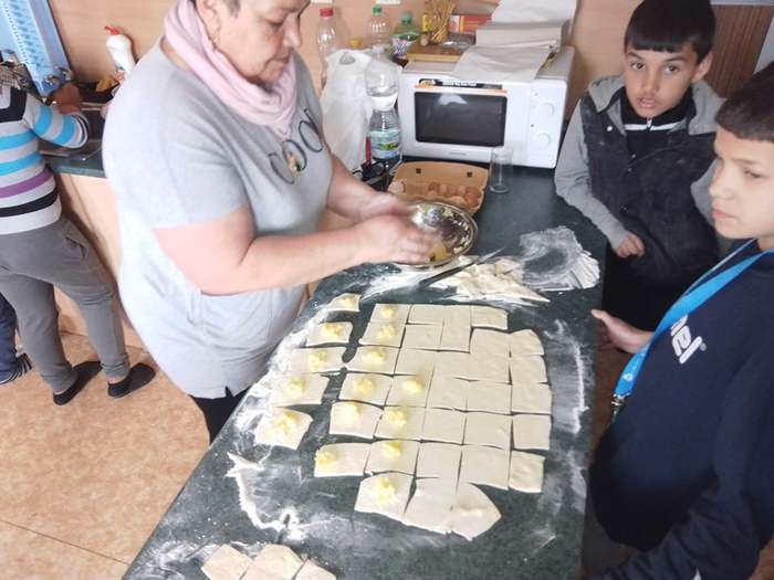 Každoročně si 8. dubna připomínáme Mezinárodní den Romů. Letos jsme vsadili na tradiční romskou kuchyni. Halušky se zelím a uzeným masem a pirohy (romsky pišoty), plněné ochucenými bramborami a sypané vysmaženými kostičkami uzeného, to jsou dobroty na slovo vzaté. Sešlo se 25 dětí ze školní družiny a všechny pomáhaly, strouhaly, krájely, míchaly a také nakonec všechno snědly. Někteří tato jídla okusili poprvé, jiní jsou na ně zvyklí od své maminky, ale všichni si je pochvalovali.