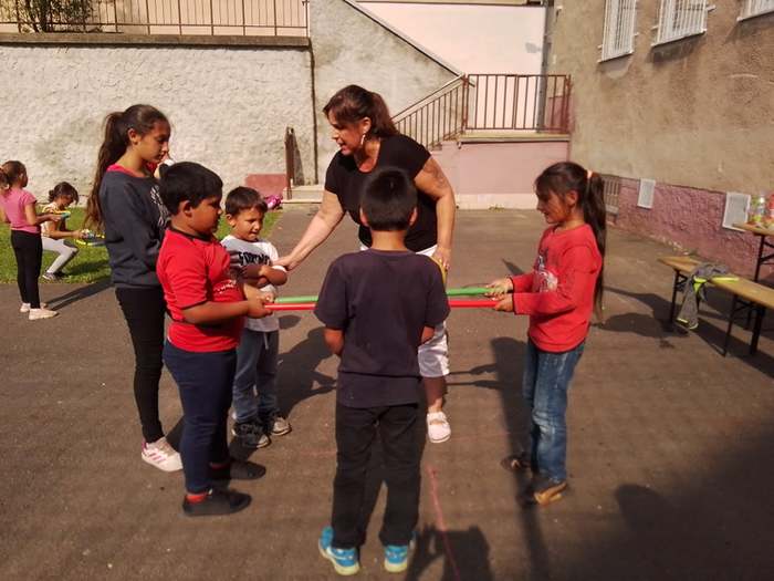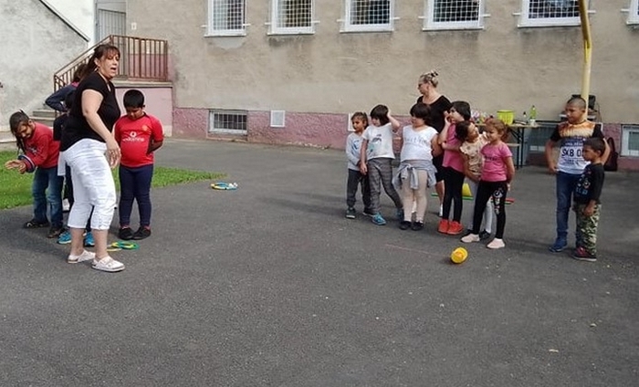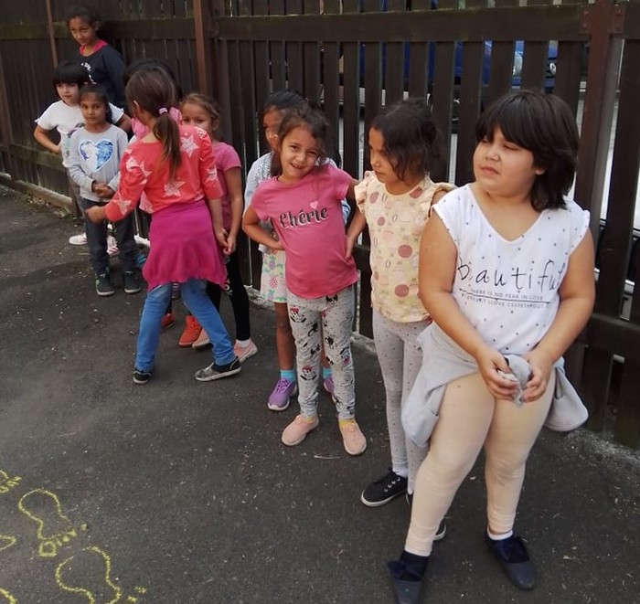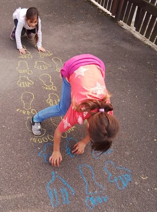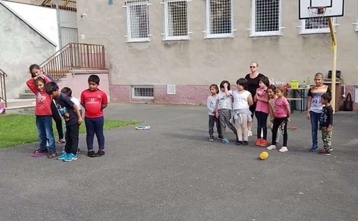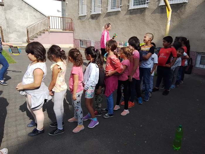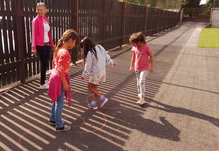 Všechna tři oddělení školní družiny se sešla na dvoře v rámci seznamovacího sportovního odpoledne.