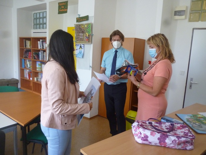 Po prázdninách čekalo překvapení pro dvě děvčata ze třídy 8.A, která byla oceněna. Dne 15.září 2021 naši školu navštívili zástupci města Vítkova a předali Kristýně ceny za 1. místo a Dominice za 2. místo v kategorii žáků do 15 let. Oceněná děvčata měla z dárků radost a těší se na účast v dalších soutěžích. Blahopřejeme.