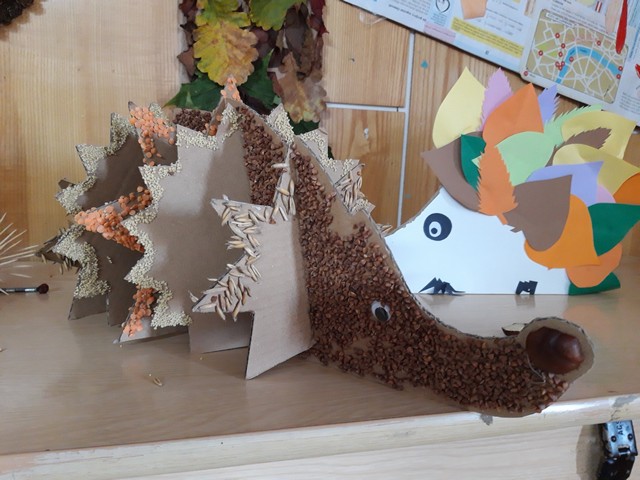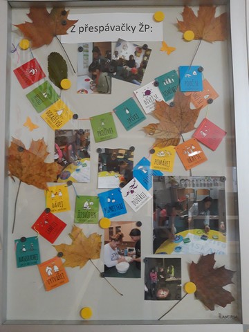 ŽP má na naší škole možnost prezentovat svou činnost prostřednictvím nástěnky ve společných prostorách školy, kterou pravidelně aktualizuje. Proto padl návrh, požádat jednotlivé třídy, aby vytvořily JEŽKA - symbol podzimu. Akce "Život s ježky"