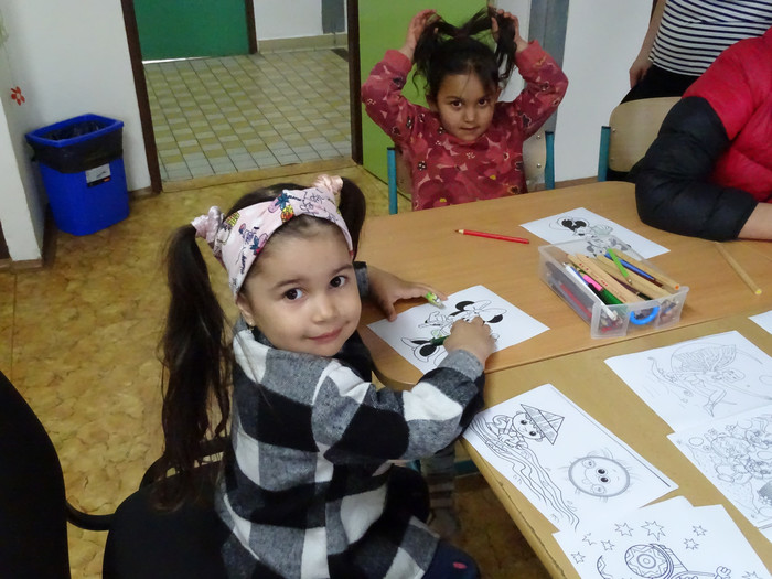 K zápisu do naší první třídy a do přípravky se dostavila spousta dětí s maminkami, tatínky, babičkami a podpořit přišli i mladší sourozenci. Odvážná školačka Pavlínka si s nimi popovídala, pohrála, kouzelnice Olí jim nadělila "kouzlo štěstí" a tak děti odpovídaly na otázky jako po másle, třídily tvary a barvičky, jmenovaly zvířátka a kreslily krásně postavu tatínka i tvary psacích písmen.