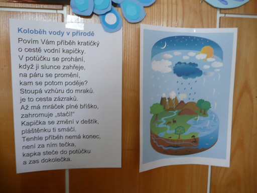 Vyučující dostali podklady k práci s čísly v matematice – počítali jsme s procenty, vypočítávali spotřebu, možnosti úspory vody, ztráty při kapajícím kohoutku apod. V českém jazyce jsme se využili právě probíraného učiva a pokusili se vytvořit příběh životodárné kapaliny v sedmi pádech. Dalo to práci, ale nakonec jsme to všechno zvládli. Mrňatům jsme alespoň četli pohádky, na kterých jsme prezentovali cestu vody do vodovodního kohoutku, nebo čističky odpadních vod.