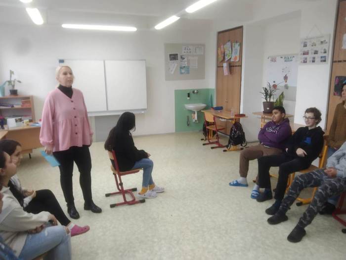 30. ledna, den před vydáváním pololetních vysvědčení, prožili žáci 2. stupně mimořádně vydařené dopoledne. Věnovala se nám paní Kateřina Kloudová ze společnosti Katherine v Brně, jež spolupracuje s panem Ladislavem Špačkem, autorem několika knih o etiketě.