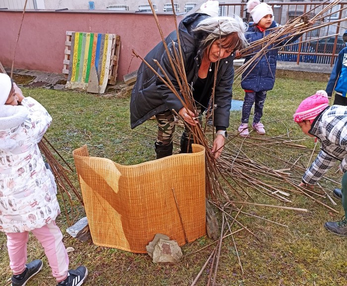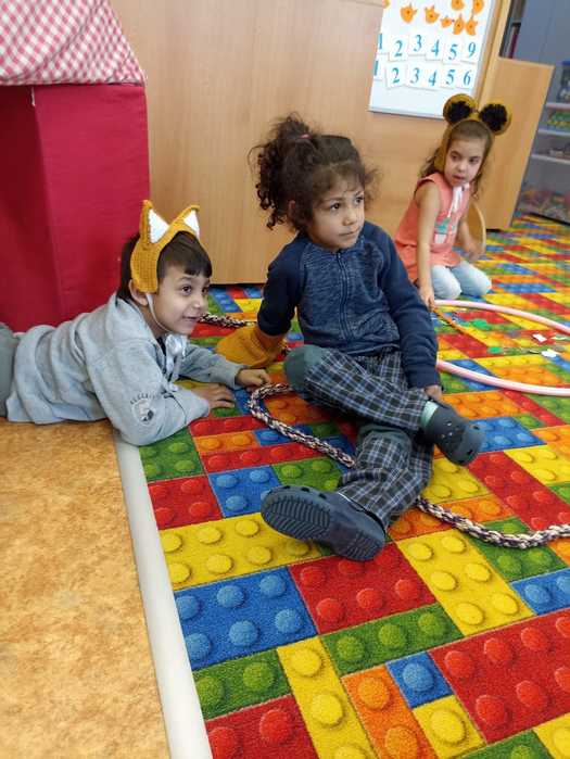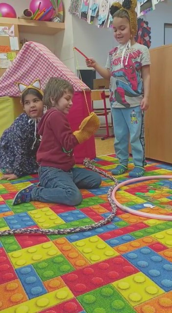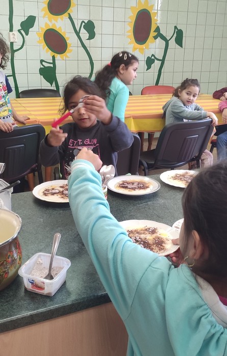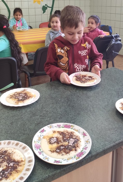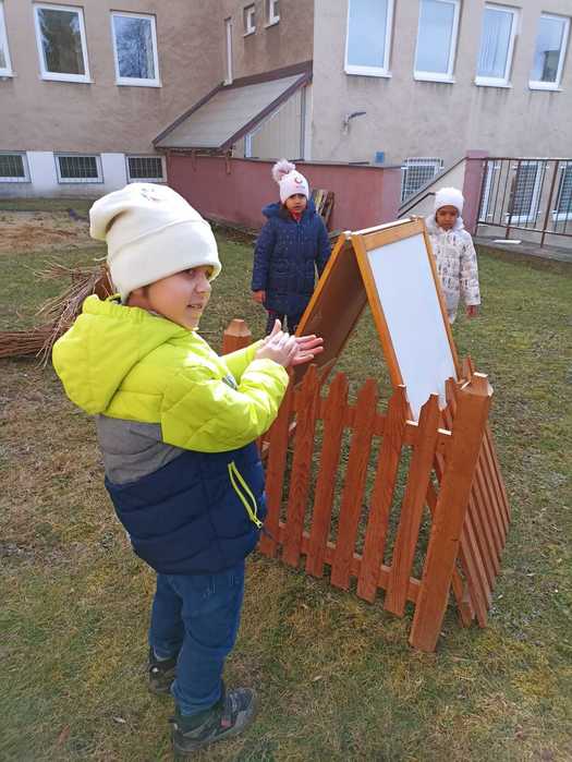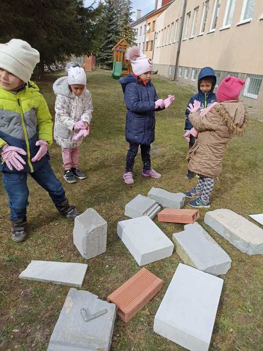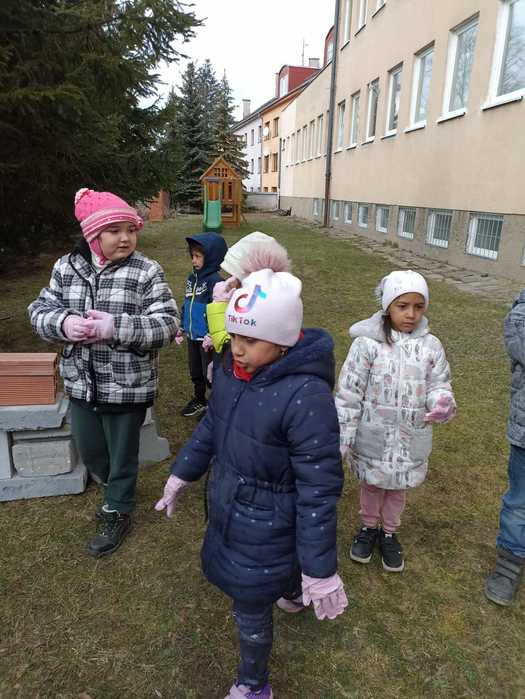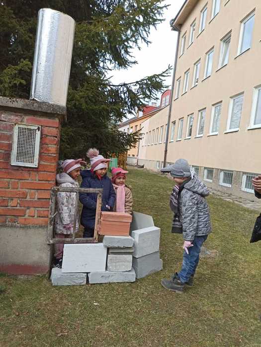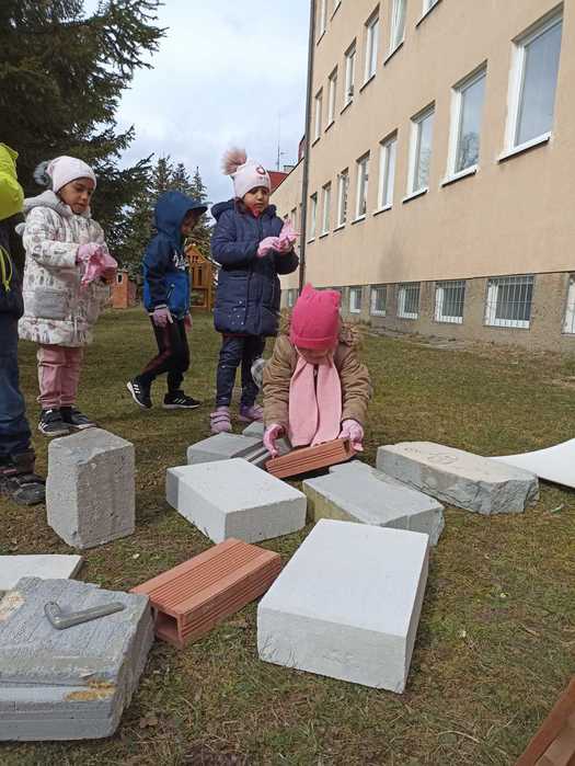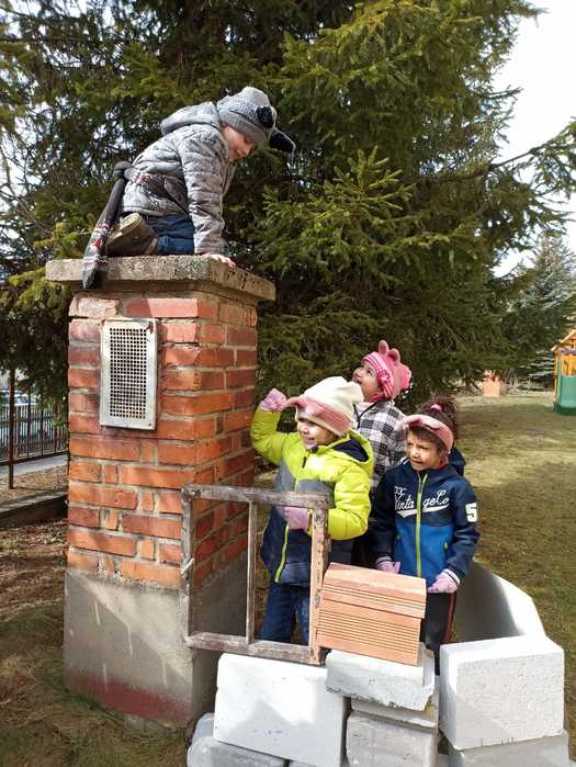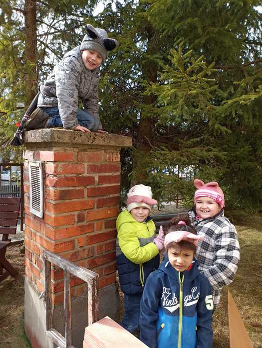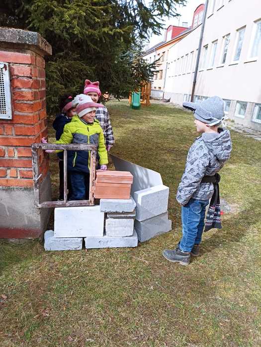 V posledním únorovém týdnu se děti zkoušely kutálet jako KOBLÍŽEK, malovaly krásné mlsné lišky, koulely koblížky z modelovací hmoty a ve školní kuchyňce si s paní učitelkou usmažily ty pravé a cukrované. Březen zahájily stavbou tří malých domečků: jeden ze slámy, druhý ze dřeva a ten třetí, nejpevnější, z cihel. Vyráběly ze starých kostek cihly a stavěly z nich "opravdový dům", rozdělovaly předměty podle toho, z jakého jsou materiálu, naučily se kreslit čuníka podle říkanky a na školní zahradě si postavily také tři domy a zahrály si na pohádku o třech prasátkách. Největší radost měly, když v improvizovaných kamnech "zatopily" prskavkou a připálily zlému vlkovi ocas. V dalším týdnu pokračovaly pohádkou Hrnečku, vař! a těšily se, až si s paní učitelkou budou vařit krupicovou kaši, o které se naučily i veselou písničku.