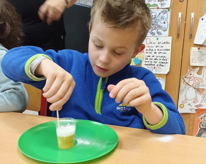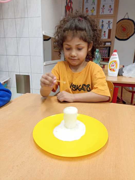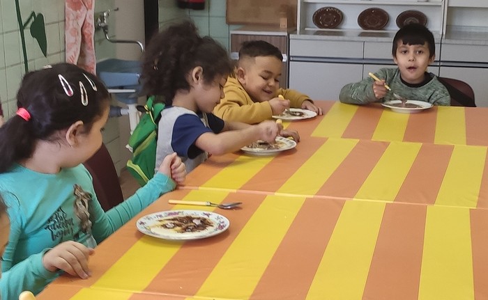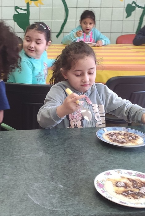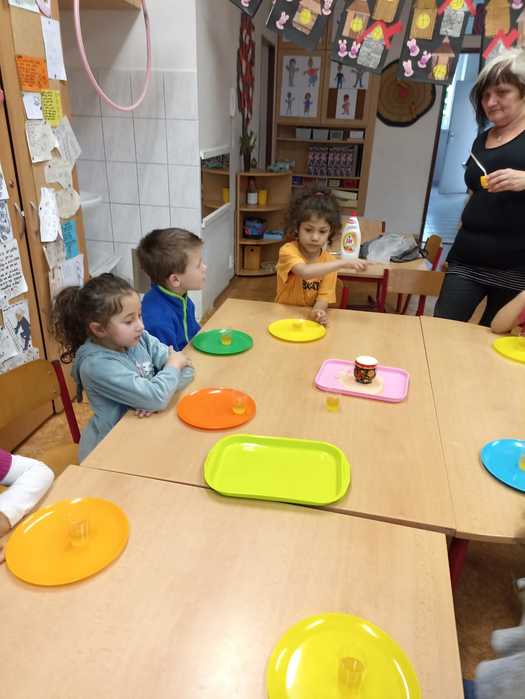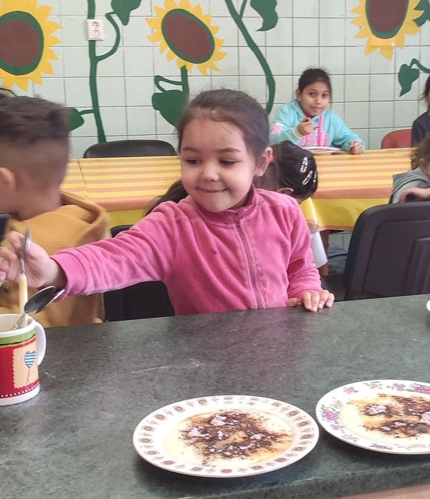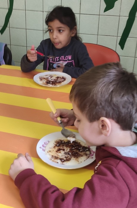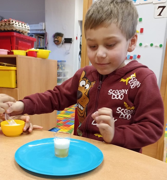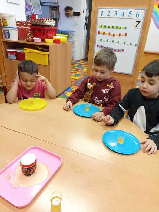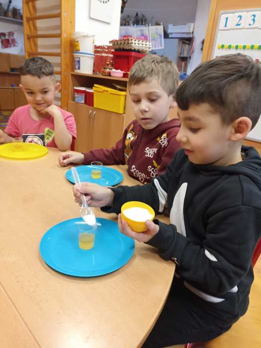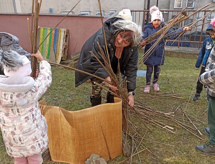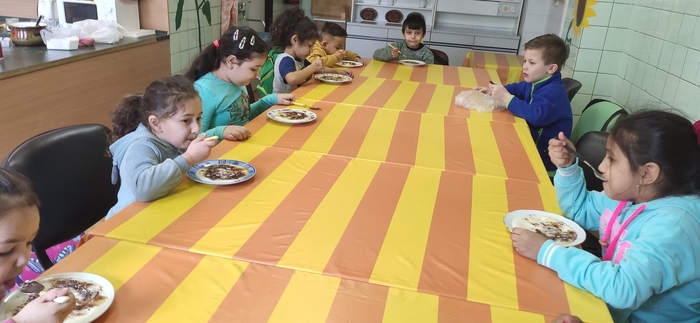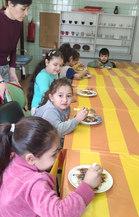 V posledním únorovém týdnu se děti zkoušely kutálet jako KOBLÍŽEK, malovaly krásné mlsné lišky, koulely koblížky z modelovací hmoty a ve školní kuchyňce si s paní učitelkou usmažily ty pravé a cukrované. Březen zahájily stavbou tří malých domečků: jeden ze slámy, druhý ze dřeva a ten třetí, nejpevnější, z cihel. Vyráběly ze starých kostek cihly a stavěly z nich "opravdový dům", rozdělovaly předměty podle toho, z jakého jsou materiálu, naučily se kreslit čuníka podle říkanky a na školní zahradě si postavily také tři domy a zahrály si na pohádku o třech prasátkách. Největší radost měly, když v improvizovaných kamnech "zatopily" prskavkou a připálily zlému vlkovi ocas. V dalším týdnu pokračovaly pohádkou Hrnečku, vař! a těšily se, až si s paní učitelkou budou vařit krupicovou kaši, o které se naučily i veselou písničku.