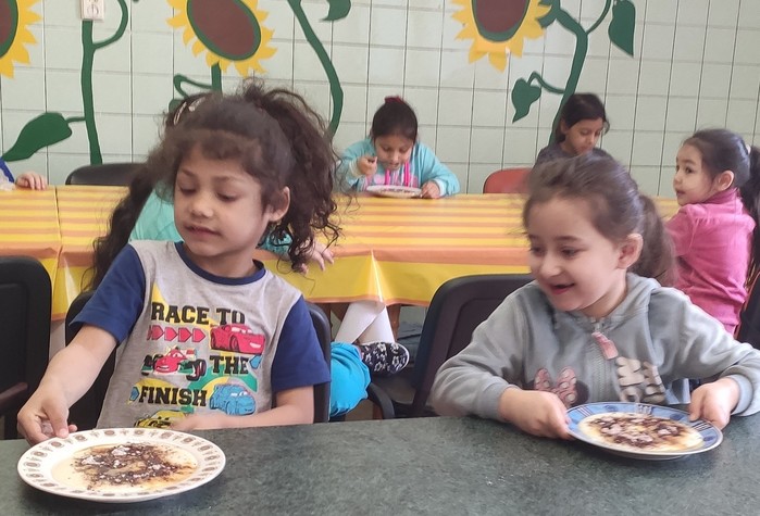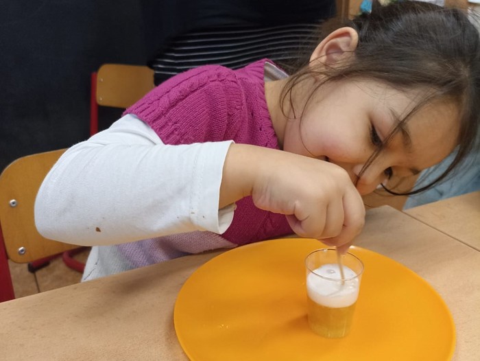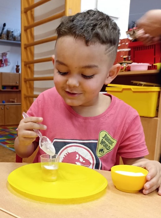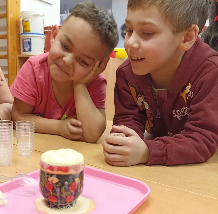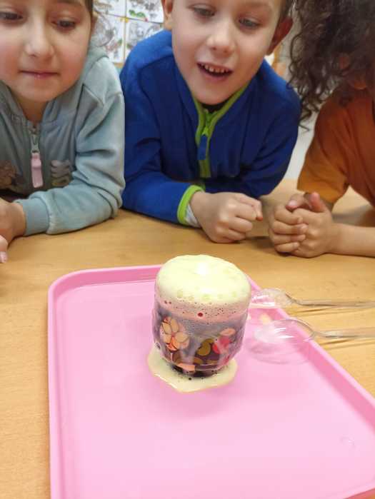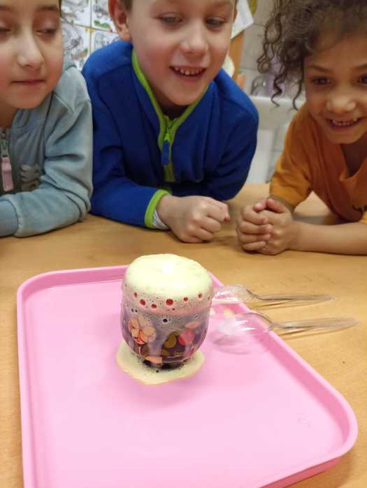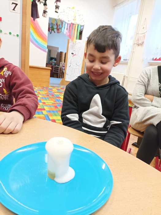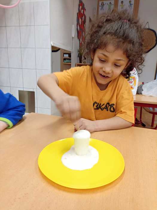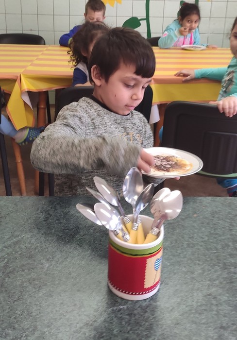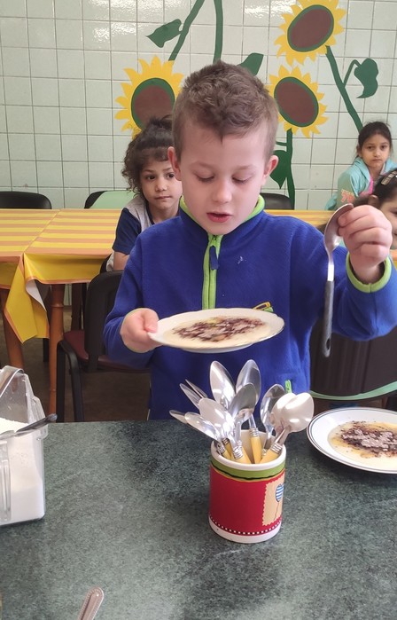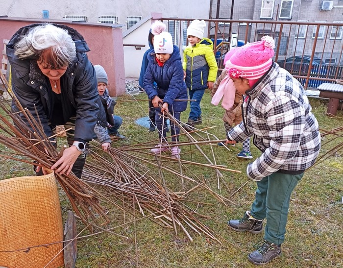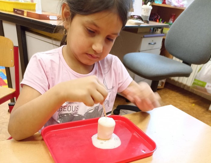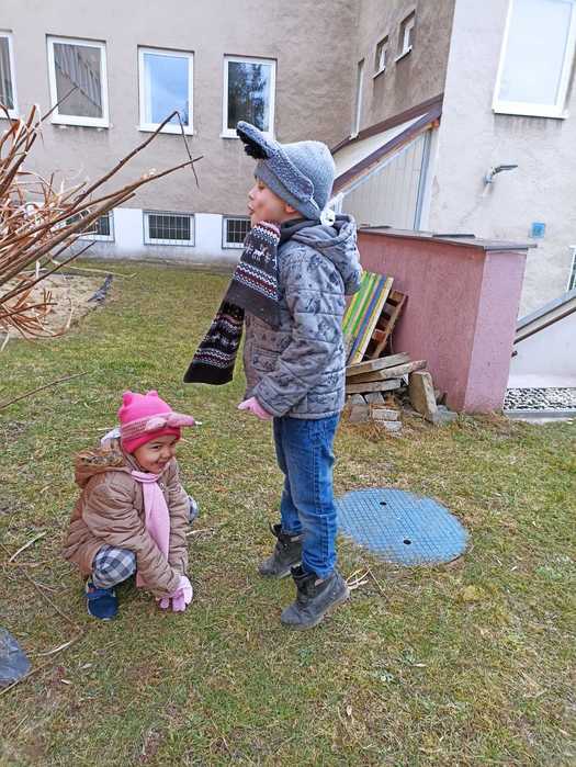 V posledním únorovém týdnu se děti zkoušely kutálet jako KOBLÍŽEK, malovaly krásné mlsné lišky, koulely koblížky z modelovací hmoty a ve školní kuchyňce si s paní učitelkou usmažily ty pravé a cukrované. Březen zahájily stavbou tří malých domečků: jeden ze slámy, druhý ze dřeva a ten třetí, nejpevnější, z cihel. Vyráběly ze starých kostek cihly a stavěly z nich "opravdový dům", rozdělovaly předměty podle toho, z jakého jsou materiálu, naučily se kreslit čuníka podle říkanky a na školní zahradě si postavily také tři domy a zahrály si na pohádku o třech prasátkách. Největší radost měly, když v improvizovaných kamnech "zatopily" prskavkou a připálily zlému vlkovi ocas. V dalším týdnu pokračovaly pohádkou Hrnečku, vař! a těšily se, až si s paní učitelkou budou vařit krupicovou kaši, o které se naučily i veselou písničku.