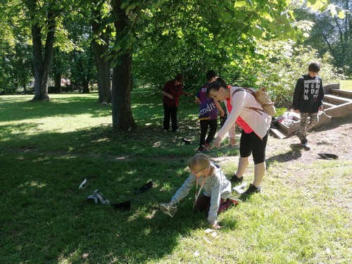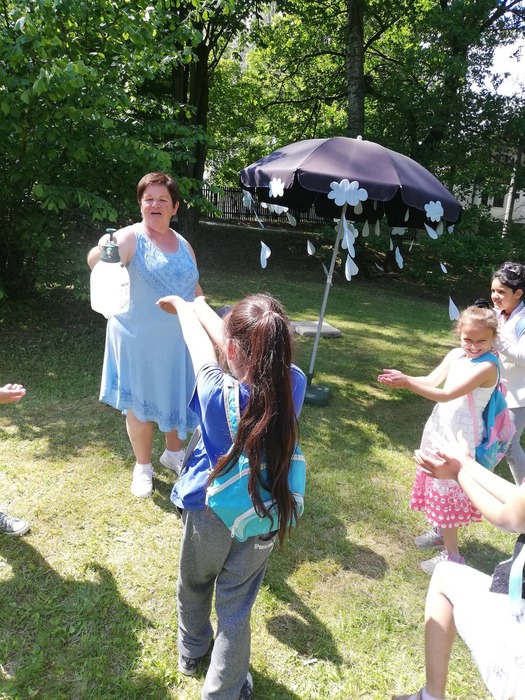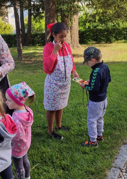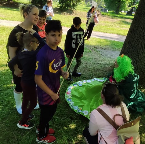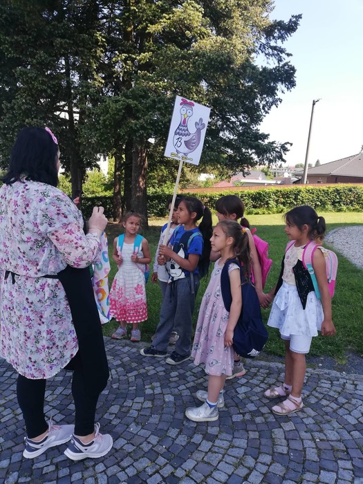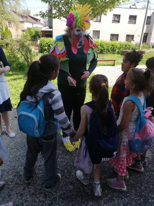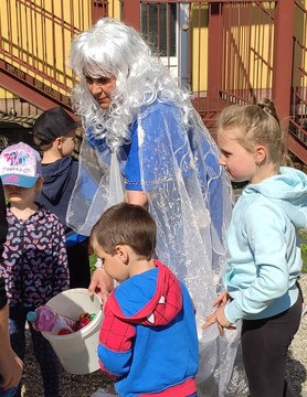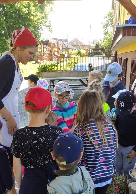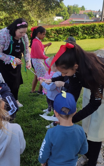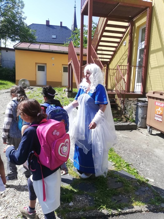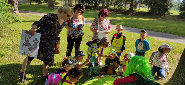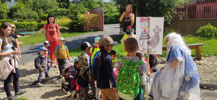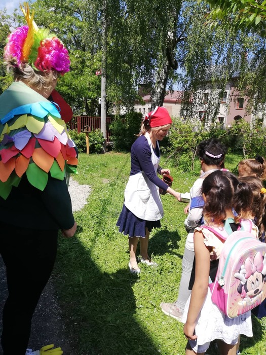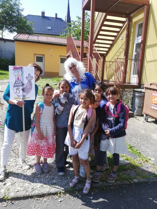 Začínáme na zahradě MŠ Husova….a zde se zase nakonec sejdeme. Připravte se na dobrodružství a těžké úkoly, možná dnes lakomému kohoutkovi zachráníte život!