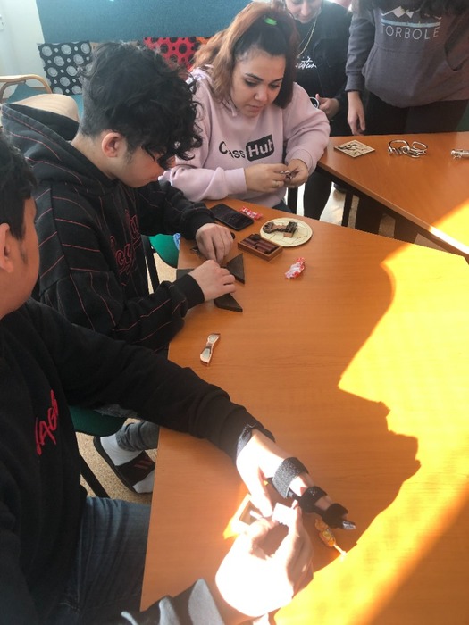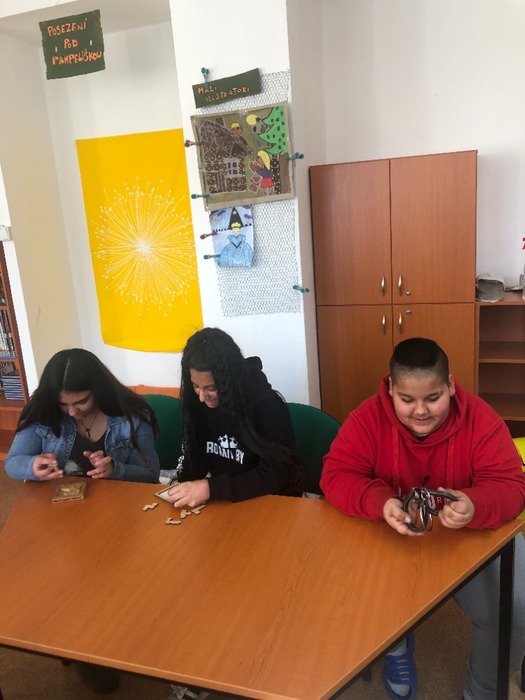 Po ukázce jednotlivých druhů hlavolamů následovaly vlastní manipulační činnosti. Žáci si volili hlavolamy podle obtížnosti či druhu materiálu. Po chvilce bylo patrno, že děti doslova propadly kouzlu něco vyřešit, uspořádat, rozpojit nebo urovnat.