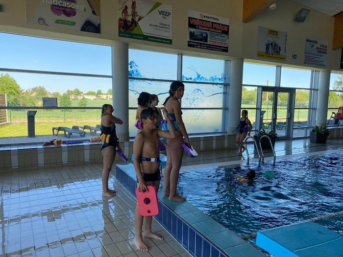 Klienty plavecké školy „Šupinka“ v Kravařích se v letošním školním roce stali žáci od 2. do 5. ročníku naší základní školy. Někteří zpočátku byli trochu nedůvěřiví, dokonce i slza ukápla, ale vše se v dobré obrátilo a po dvou lekcích už všichni vědí, že voda v bazénu se nepije, protože bychom pak neměli v čem plavat. A co je nejlepší? No přece tobogan!!!