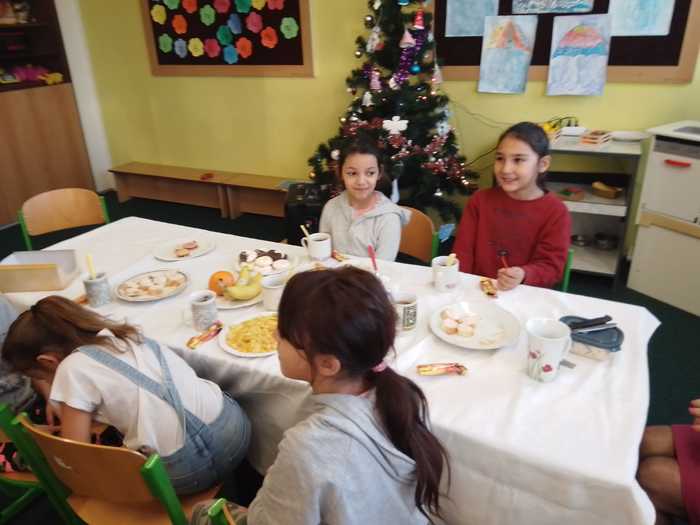 Poslední den před vánočními prázdninami školou zavonělo cukroví, ovoce, a také vůně očekávání. Ve třídách si děti s třídními učiteli připravily vánoční besídky. Jedlo se, pilo a hodovalo, povídaly se historky, poslouchaly koledy a někde došlo i na malé dárečky.