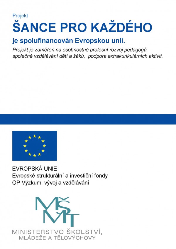 Ve školním roce 2017/2018 zahájila škola realizaci aktivit v rámci projektu OP VVV - pod názvem Šance pro každého.