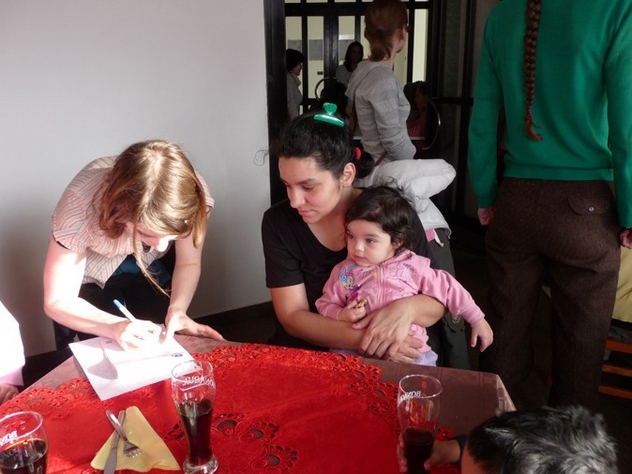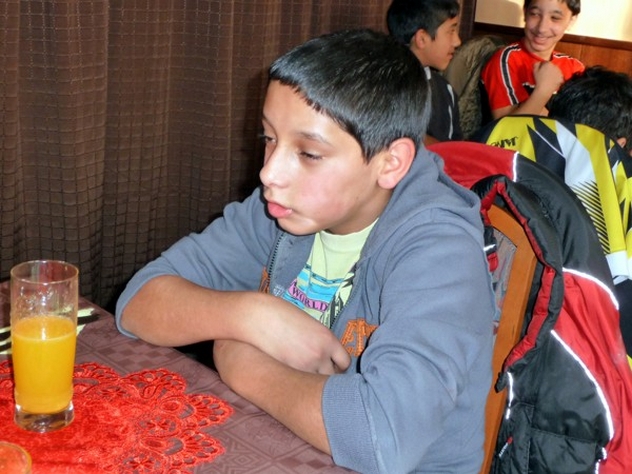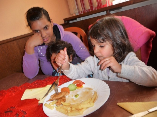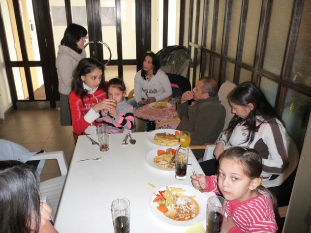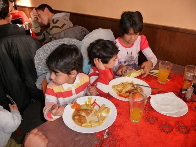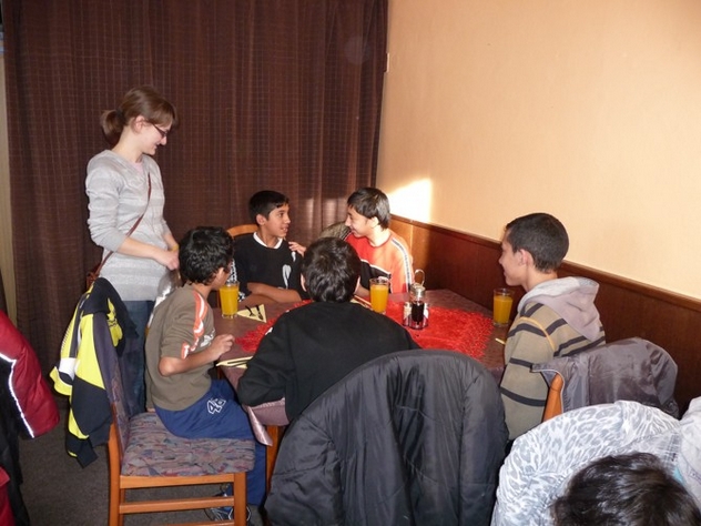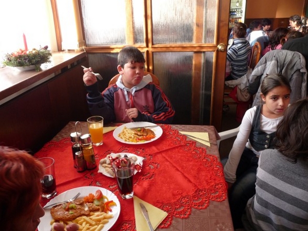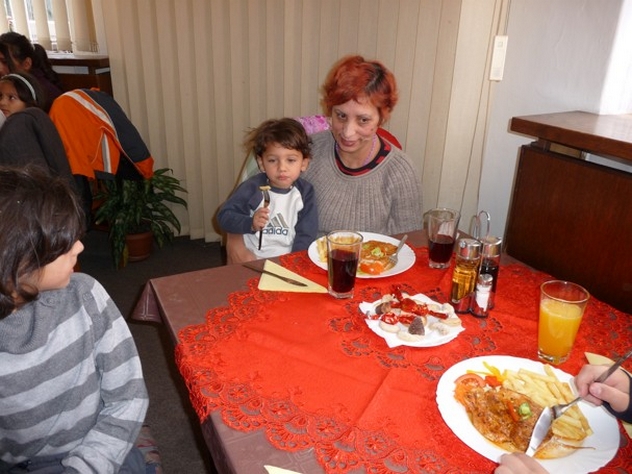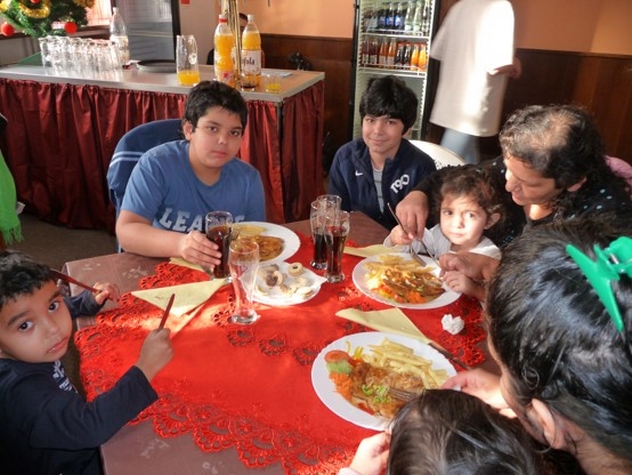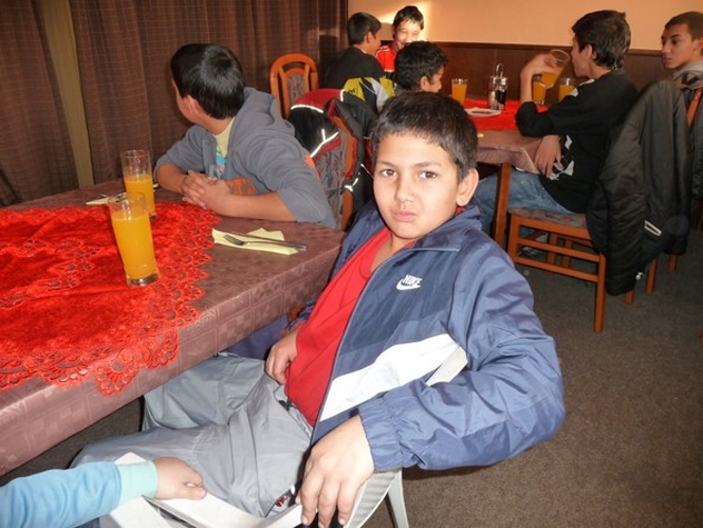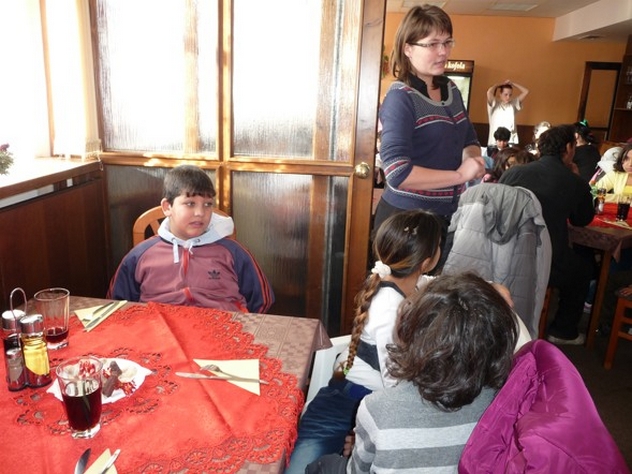 V letošním roce se 29.12.2012 konal již třetí Vánoční oběd, na který nás pozvali kamarádi z Komunity Sanť Egidio. Tentokrát jsme se sešli v restauraci Na učilišti a že nás opravdu bylo! Mnohem víc, než v letech minulých. Tentokrát přišly i maminky a babičky. Jen tatínkové byli pouze dva. Popovídali jsme si, pochutnali na skvělém obědě, kdy jsme si mohli vybrat ze dvou jídel - smažený sýr nebo přírodní kuřecí řízek s hranolkami. Potom jsme dostali dárky, které nás opravdu potěšily. Jsme moc rádi, že na nás ti velcí kamarádi neustále myslí, a že tak zdaleka za námi stále jezdí. Jen nevím - u kterého stolu se setkáme za rok., když se nás schází čím dál víc.